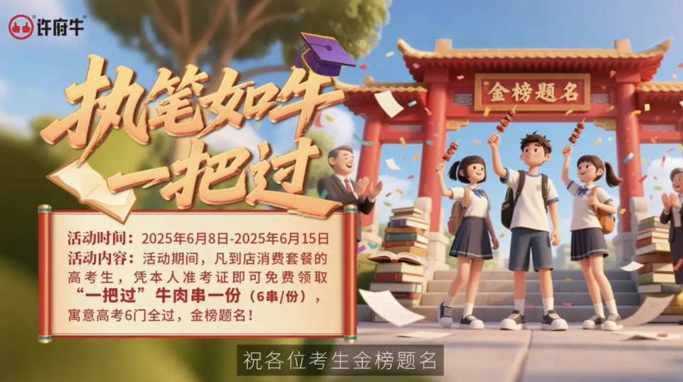 2025年高考刚刚结束,在营销手段层出不穷的今天,许府牛这家火锅店用独特的“一把过牛肉串”为考生送上了最实实在在的祝福“全国考生凭准考证即可免费领取满分牛肉串“一把过”,每份6串,寓意“六门全过,金榜题名”。 不设任何门槛的心意不仅实在,更暗藏巧思:每份精心准备6串牛肉,既象征"六门全过"的美好寓意,又能让考生吃得满足;"一把过"的命名一语双关,既是考试顺利的真诚祝福,又生动体现了抓握食用时的爽快体验。从活动设计到产品细节,许府牛用最质朴的方式,为考生们送上一份饱含祝福的实在美味。 活动期间,许府牛不仅迎来客流高峰,不少家长带着刚考完试的孩子前来打卡,更引发社交媒体的自发传播。 值得一提的是,许府牛此次创新推出的牛肉串产品,成功突破了消费者对传统火锅店的刻板印象。与常规火锅店专注涮煮菜品的经营模式不同,许府牛独具匠心地采用"火锅+炸串"的跨界融合策略,为顾客打造了耳目一新的餐饮体验。这一创新举措背后,体现的是品牌对市场趋势的精准把握和主动求变的经营智慧。 近年来,许府牛持续深耕品类的融合创新,不断突破传统火锅边界:从经典的老山东牛杂火锅,到融合四季时令的套餐式火锅,再到如今匠心打造的现炸鲜牛肉串,始终秉持"更优质、更纯正、更多元"的理念。品牌以真"牛肉"为核心竞争力,通过持续拓展消费场景,为食客带来层次丰富的味觉体验,让每一口都能品尝到牛肉的本真之味,不断延伸消费场景。 "一把过"牛肉串恰似一个精妙的隐喻:正如高考只是人生长河中的一站,火锅品牌同样可以突破"涮煮"的品类桎梏,以多元化的用餐体验满足消费者日益丰富的味觉与情感需求。 当众多品牌沉迷于流量争夺战时,许府牛却用一串小小的牛肉串诠释了营销的本质——真诚永远胜过喧嚣。这场高考应援活动摒弃了复杂的规则设计与浮夸的营销话术,仅以"免费饱餐"的实在承诺和"六门全过"的暖心祝福直击人心。在这个过度包装的时代,这份难能可贵的质朴与真诚,恰恰成为了品牌与消费者建立深层情感联结的关键密码。 或许多年以后,当曾经在考场外接过"一把过"牛肉串的学子们回望青春,他们会记得:在那个蝉鸣聒噪的夏天,有一家火锅店用滋滋作响的油香和滚烫的热忱,为他们的梦想添了一把火。这份藏在市井烟火里的温情,正是许府牛作为国民餐饮品牌最动人的底色。许府牛的这次营销,看似是借势高考,实则展现了品牌长期积淀的人文内核。当我们来细数这场应援最动人的部分,你会发现许府牛的商业温度藏在一串数字背后:全国1400家门店预计每日送出超过20万串"一把过"牛肉串。这种"就当是给邻居家孩子加个菜"的朴素理念,与品牌一贯坚持的亲民定价策略高度契合——不搞噱头,不玩营销套路,而是用最实在的方式传递祝福。这种"恰到好处"的温暖显得格外珍贵。