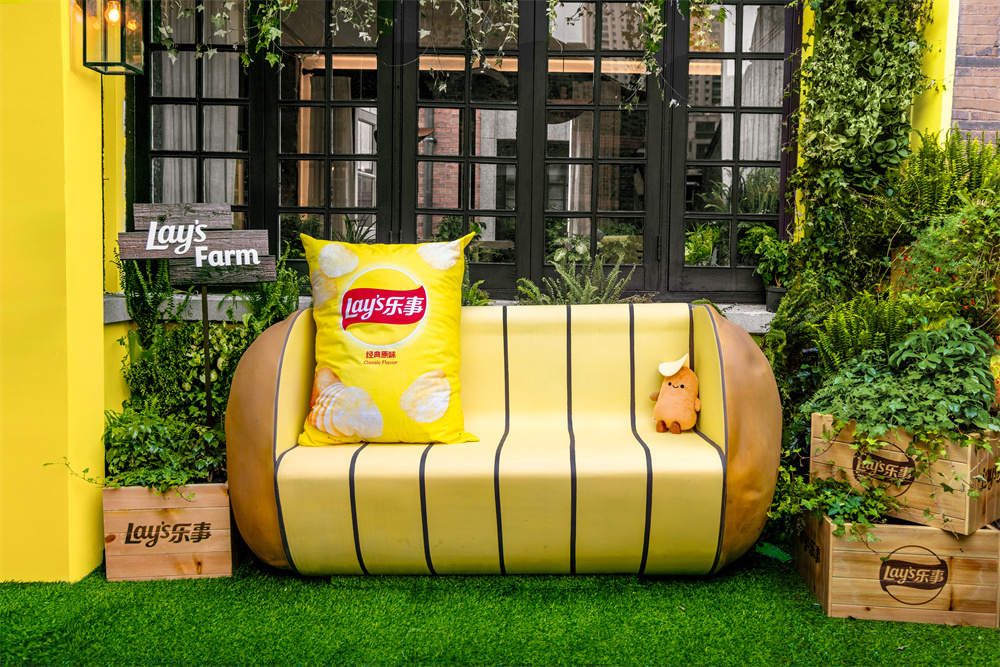 当土豆的魅力在餐桌上大放异彩,乐事更将创意表达延伸至空间美学。以艺术语言解构食材生命力,将品牌故事脉络融入场景肌理,打造集味觉盛宴、视觉沉浸与潮流态度于一体的复合型体验空间,成为与年轻圈层深度对话的全新载体。