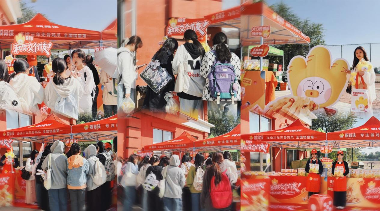 2025年8月,脱骨侠和沃尔玛在深圳举办了一场大型showcase,“疯狂鸡爪挑战赛”带动了新一波抖音打卡热潮;在“脱骨侠校园行”活动中,脱骨侠走进大学校园,从天津一路南下直到福建,每到一个学校,都受到大学生们的疯狂追捧。